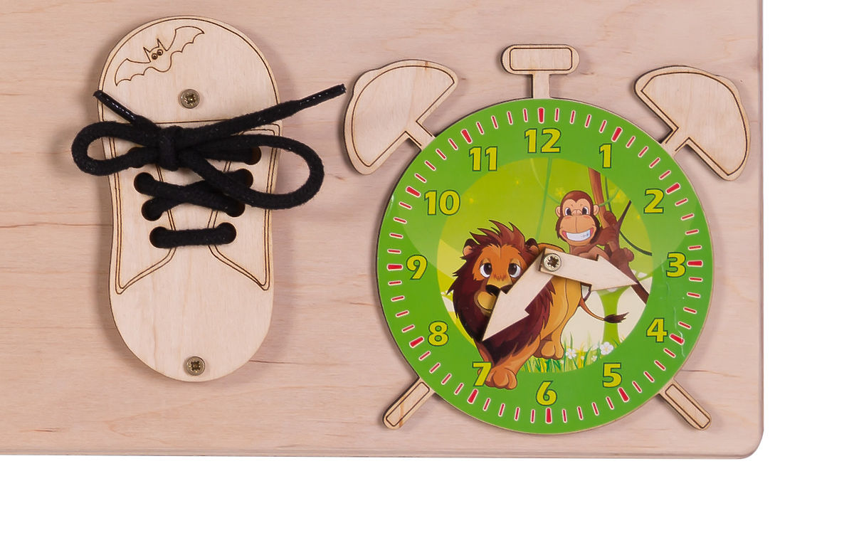 Learning through play is the best way for children to develop properly. The wooden activity board is based on the principles of Montessori pedagogy and encourages the development of independence, logical thinking, creativity, patience, and fine motor skills in children.