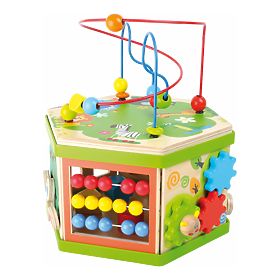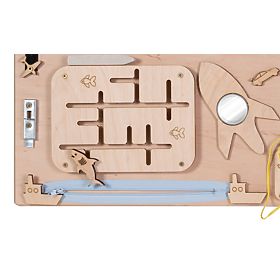 This educational board in a natural finish includes a variety of interesting and colorful manipulative elements as well as an electronic notepad with a pen, where children can draw, write, and then easily erase the image with the push of a button to create new works.