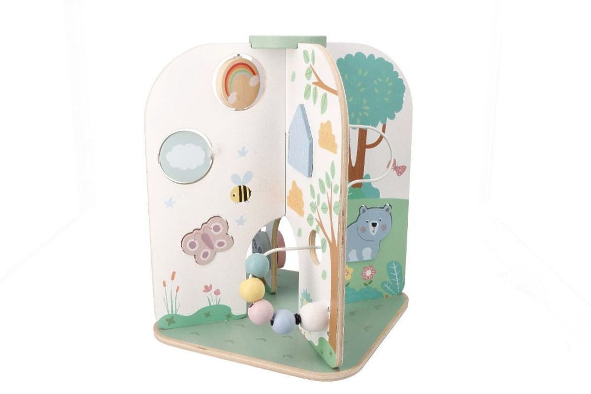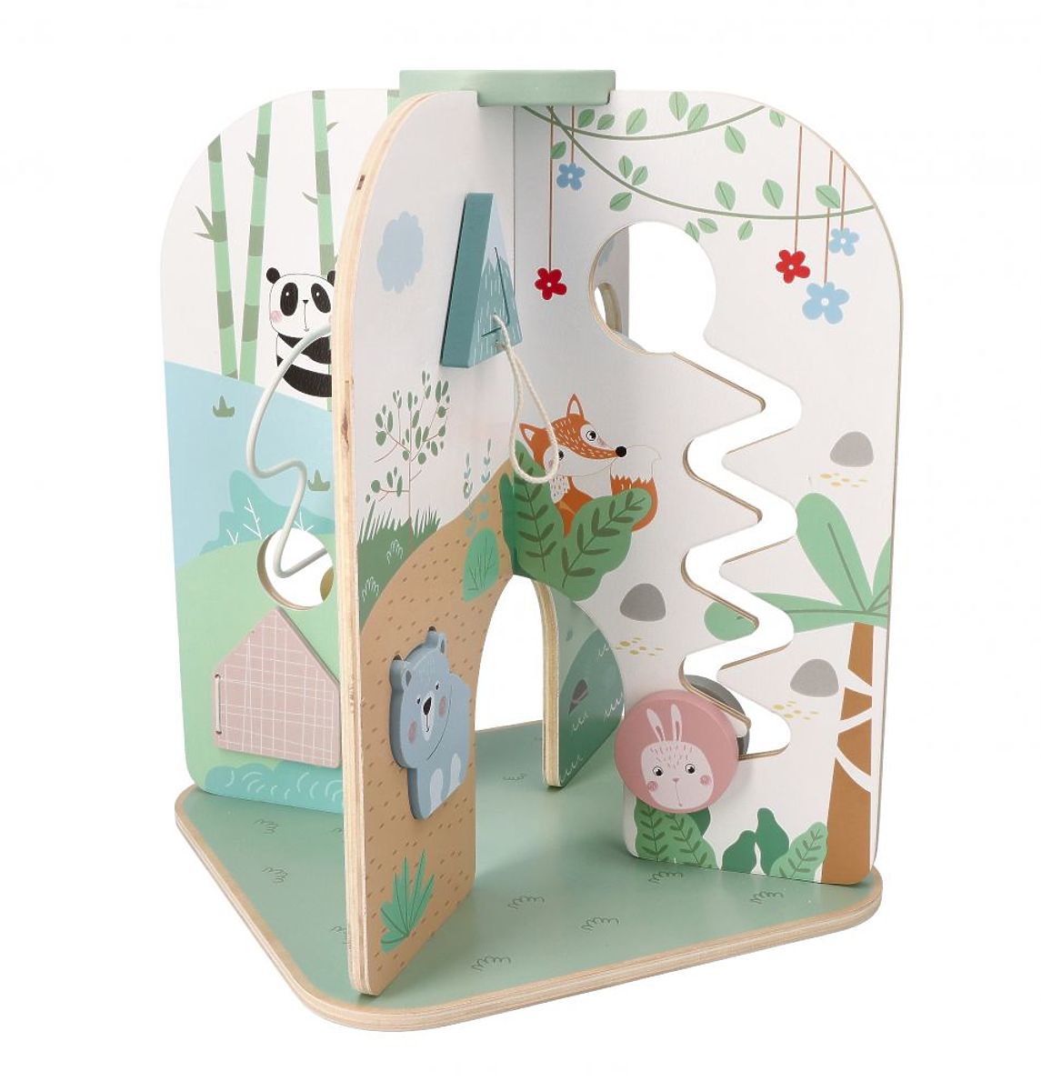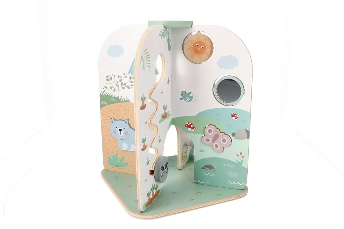 This toy is a large activity center that helps a child develop many skills, such as hand-eye coordination, motor skills, logical thinking, and adaptability. Most importantly, it fosters curiosity and imagination.
