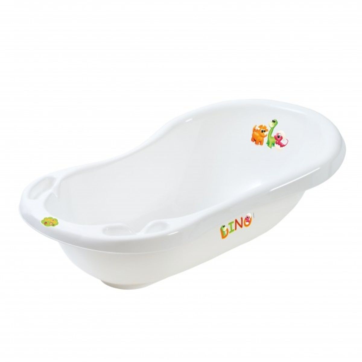 This beautiful white baby bath with cute dinosaurs is a practical aid for all mums.
