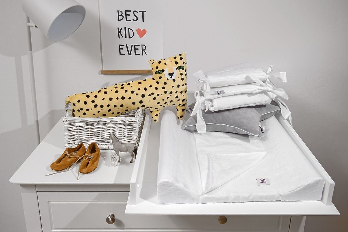 The comfortable Comfort baby changing mat in white will make every changing and further care of your baby's skin easier and more pleasant. Thanks to the raised edges of the pad, the baby is stabilized in the middle and thus protected from accidental falls. The pad includes a washable cover and a towel.