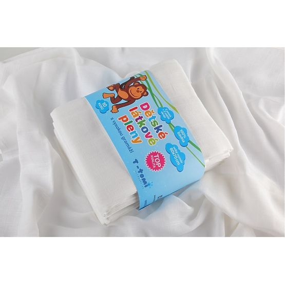 There are ten muslins in a set. The muslins meet the Czech Ministry of Health Certificate no. 84/2011 Coll on hygiene requirements for toys and products for children below the age of 3.