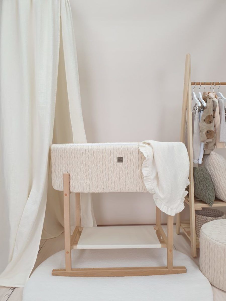 The basket is very practical, lightweight, compact, and can be moved between rooms, allowing you to keep your baby close at all times. The cradle can be rocked, which may help soothe and lull your baby to sleep. A storage space for baby accessories is provided by a fabric shelf at the bottom of the cradle.
