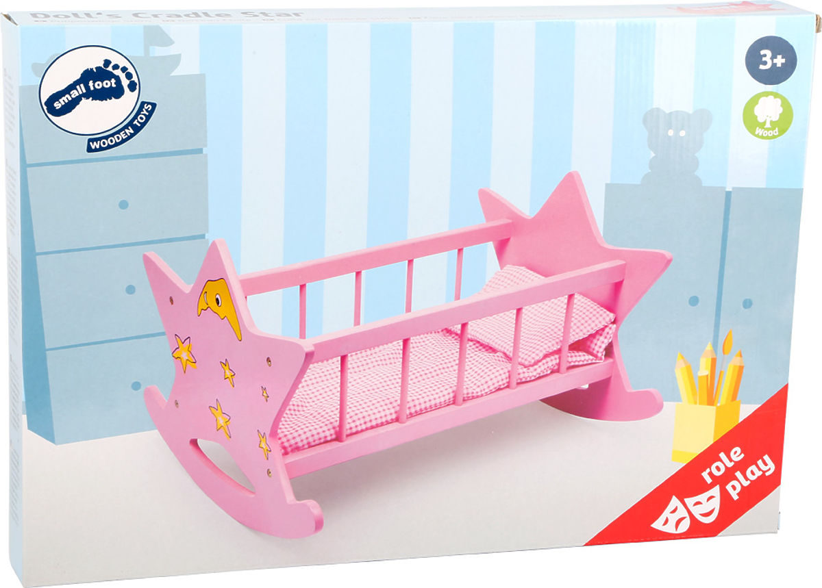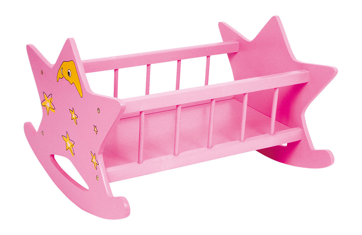 Attention all star gazers. With this great doll cradle made of sturdy wood, children rock their dolls into their dreams. The front and back of the cradle feature a starry sky design. Main features: encourages active play and trains social skills, stable construction, quality workmanship, suitable for kindergartens