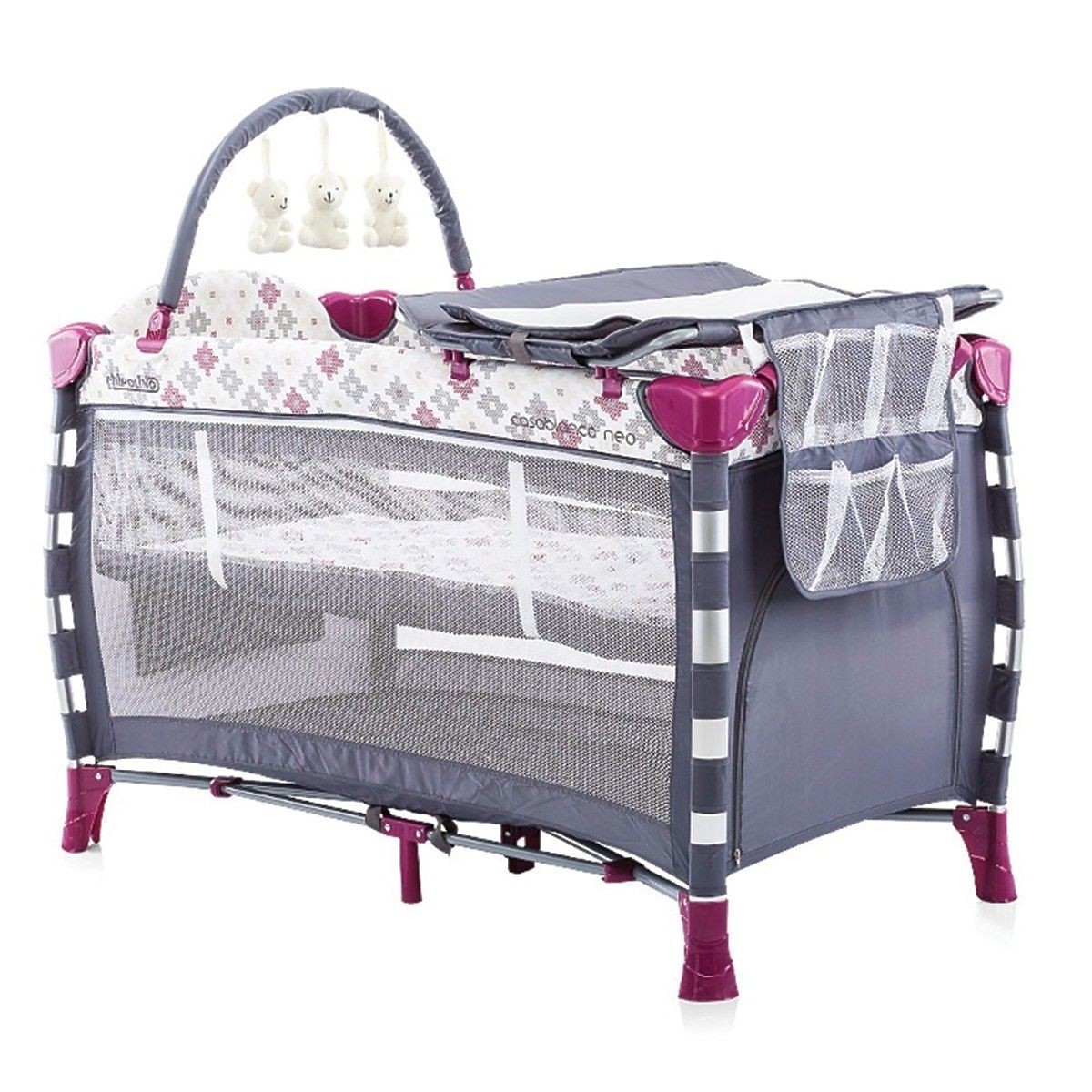 The purple Casablanca Neo Play Pen travel cot is a comfortable and practical aid. .. more