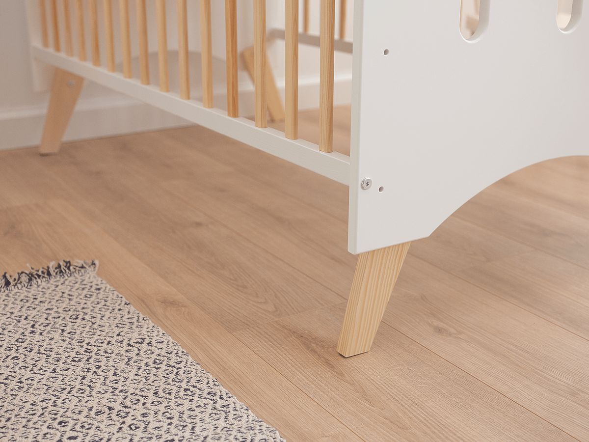 Elegant Baby Dream Crib in pure white color with a natural wood shade, in an original design, is the perfect combination of safety and elegance for your little child.