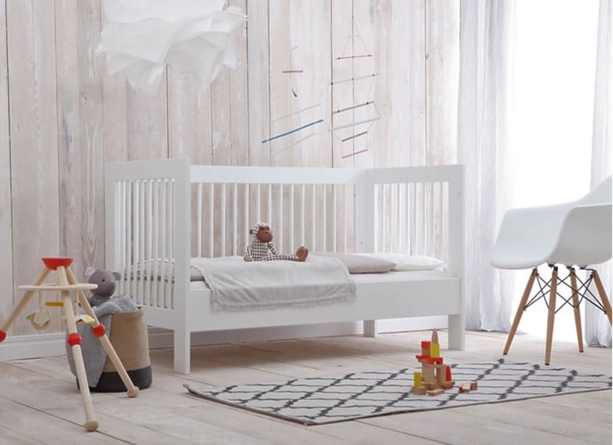 The classic children's crib 120x60 cm in white is not only beautiful but also very practical thanks to its removable side.