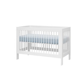 Classic 120x60 cm white crib with a removable side and adjustable mattress base. .. more
