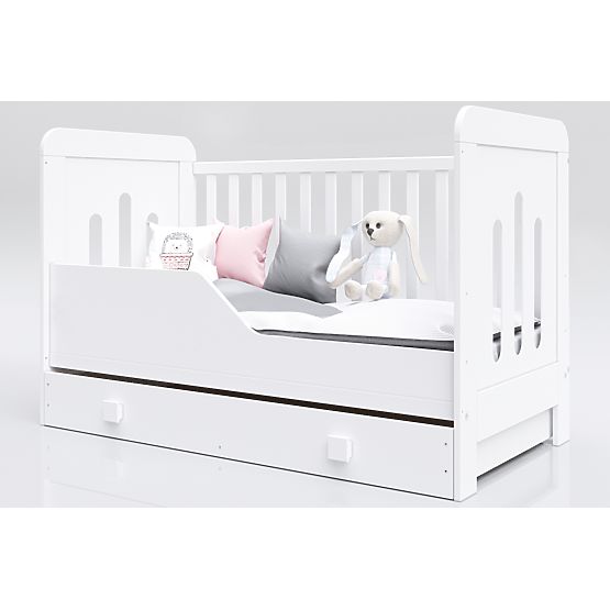 Stylish model of the white Zuza children's bed with dimensions of 140x70 cm. The bed is available in options with or without storage space. Suitable for children from birth up to a height of 120 cm.