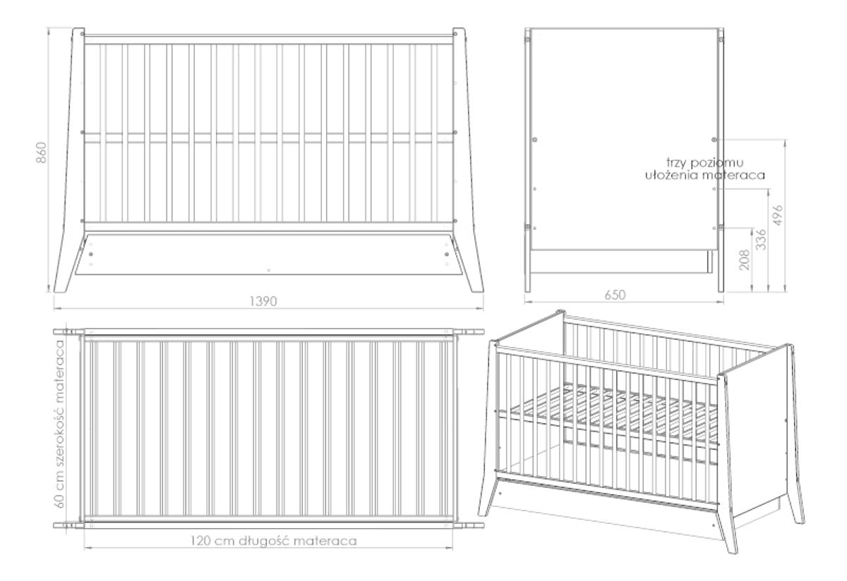 Modern Cosmo Scandi crib 120x60 cm in white-natural decor, suitable from birth to 100 cm. .. more