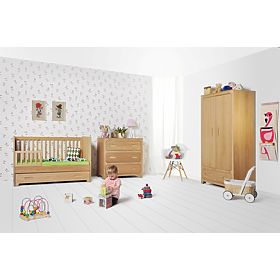 The Sherwood baby cot combines natural oak veneer, MDF and European oak. This makes it a robust cot, which can grow with your child.