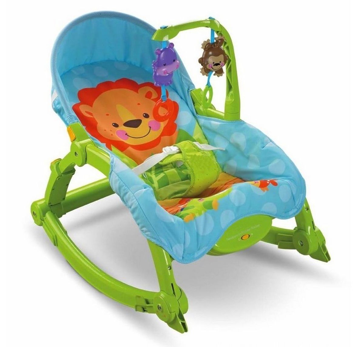 Baby's safety is ensured with a 3-point safety strap. Included is a toy holder to attract baby's attention. You will appreciate the special soft and relaxing vibrations that can calm your baby down and often even send him to sleep.