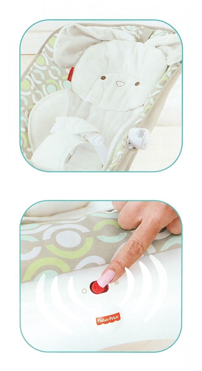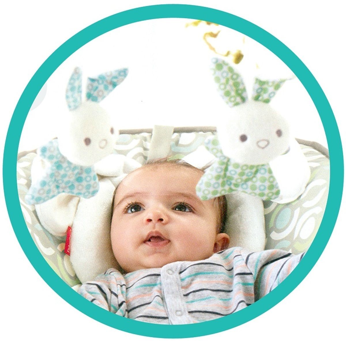 The Comfort Curve Deluxe seat from Fisher Price is practical and very elegant. Children will feel calm, relaxed and entertained at the same time. It is comfortable, beautifully soft and adjusts to baby's natural movement. There are many functions that can help your baby fall asleep peacefully, such as soft vibrations. To support the baby's head, there is a soft insert in the shape of a cute bunny. Your baby will feel safe and comfortable while playing with the bunnies hanging above his head. They can help him practise fine motor skills and grasping skills. Suitable from birth.