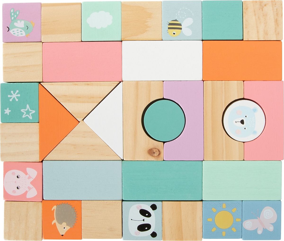 This cart with blocks in trendy pastel colors will delight any child. It contains 34 blocks, both colorless and pastel, which develop spatial imagination, motor skills, creativity, and the ability to recognize shapes. The rubberized wheels ensure quiet operation and joy from riding. This cart, with its consistent design concept and many beautiful details, is very attractive to children. The cart with building blocks is part of the "Pastel" product line and stands out with a high visible wood content and modern pastel coloring. Main features: Rubberized wheels for quiet and safe riding Additional play options with wooden insert blocks Practical storage space