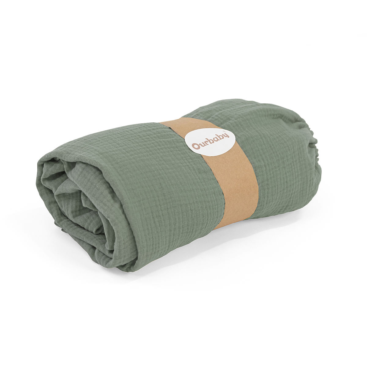 Soft and breathable muslin fitted sheet Ourbaby 160x80 cm in green. .. more