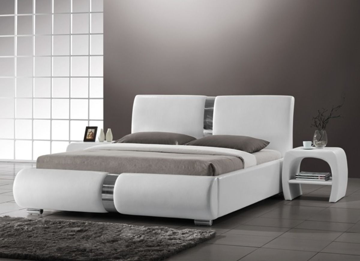 The bed is made from eco-leather is has high-quality wooden frame, with a slatted bed base completed by metal and chrome accessories.