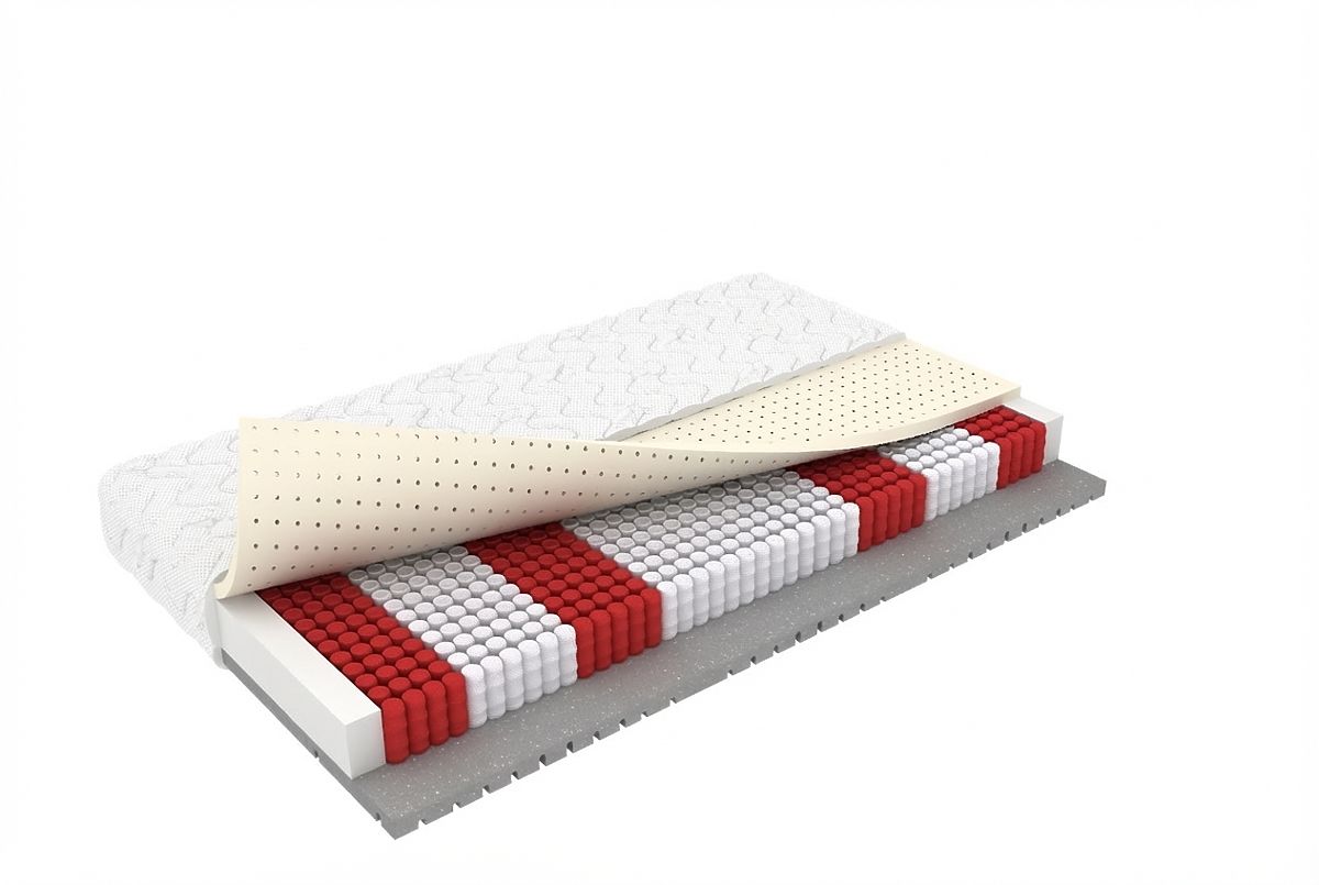 The Filip mattress combines the advantages of multipocket springs and natural latex to ensure ideal point support for the body. It is characterized by high elasticity, resistance to deformation, and excellent ventilation. The latex layer, together with the profiled foam, guarantees a hygienic environment and anti-allergic properties.