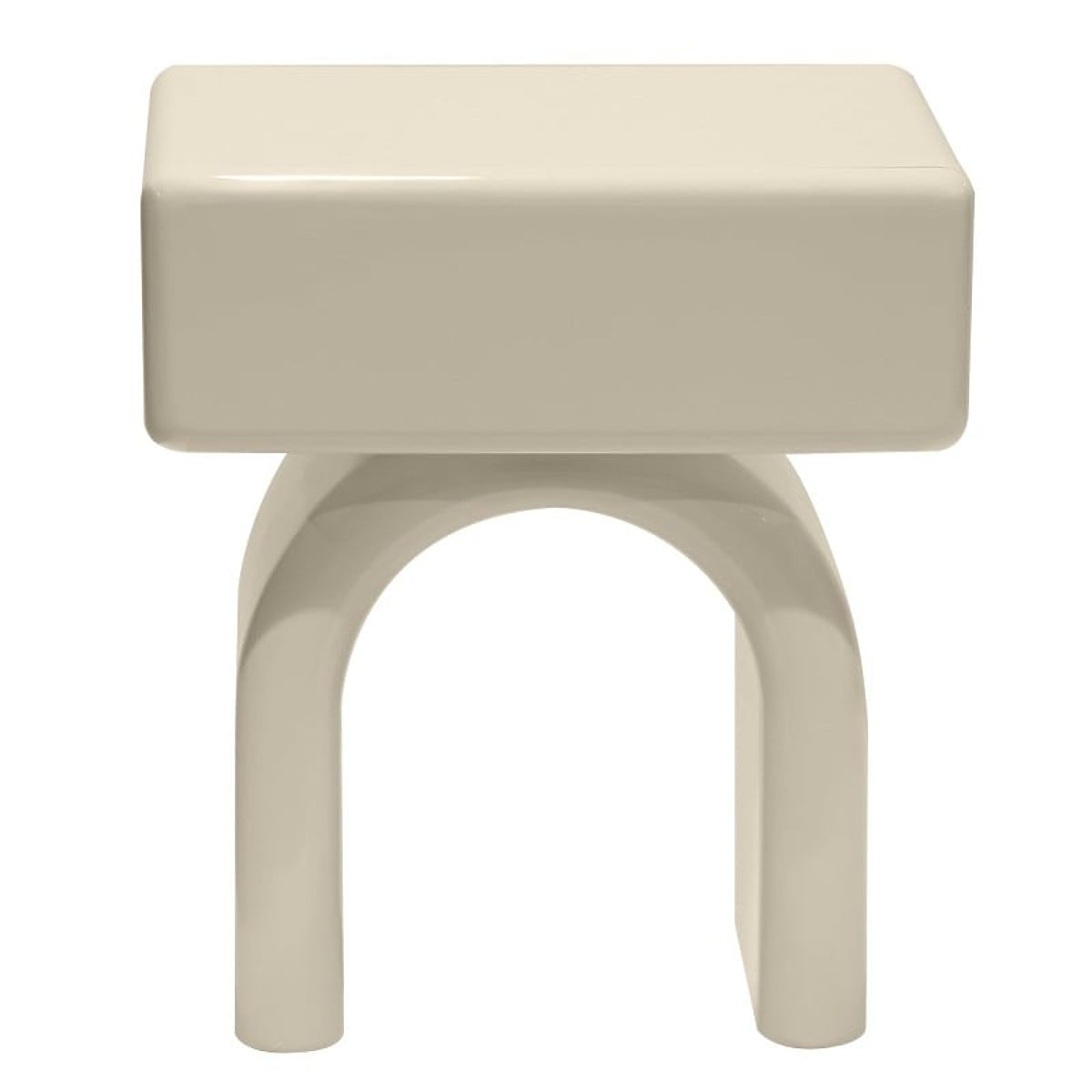 The Blush bedside table is a piece of furniture that immediately captures attention with its exceptional, modern design. Its distinctive feature is the arched-shaped base, which ensures stability while giving the whole piece a light and futuristic form.
