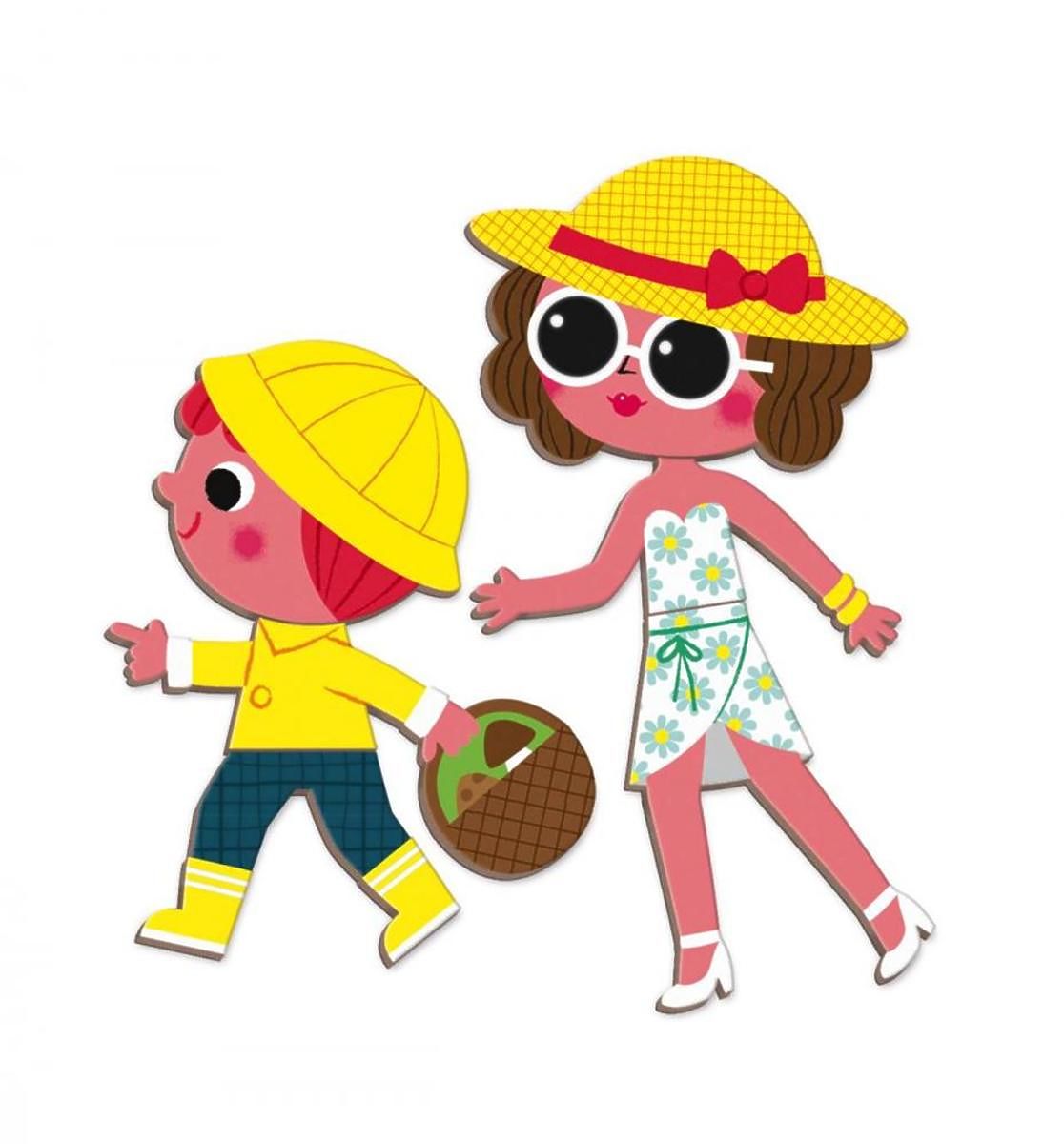 The magnetic puzzle in the shape of a book has colorful motifs that will interest children. Your little ones can guess the seasons and put together a scene of that season with appropriate clothes and accessories.