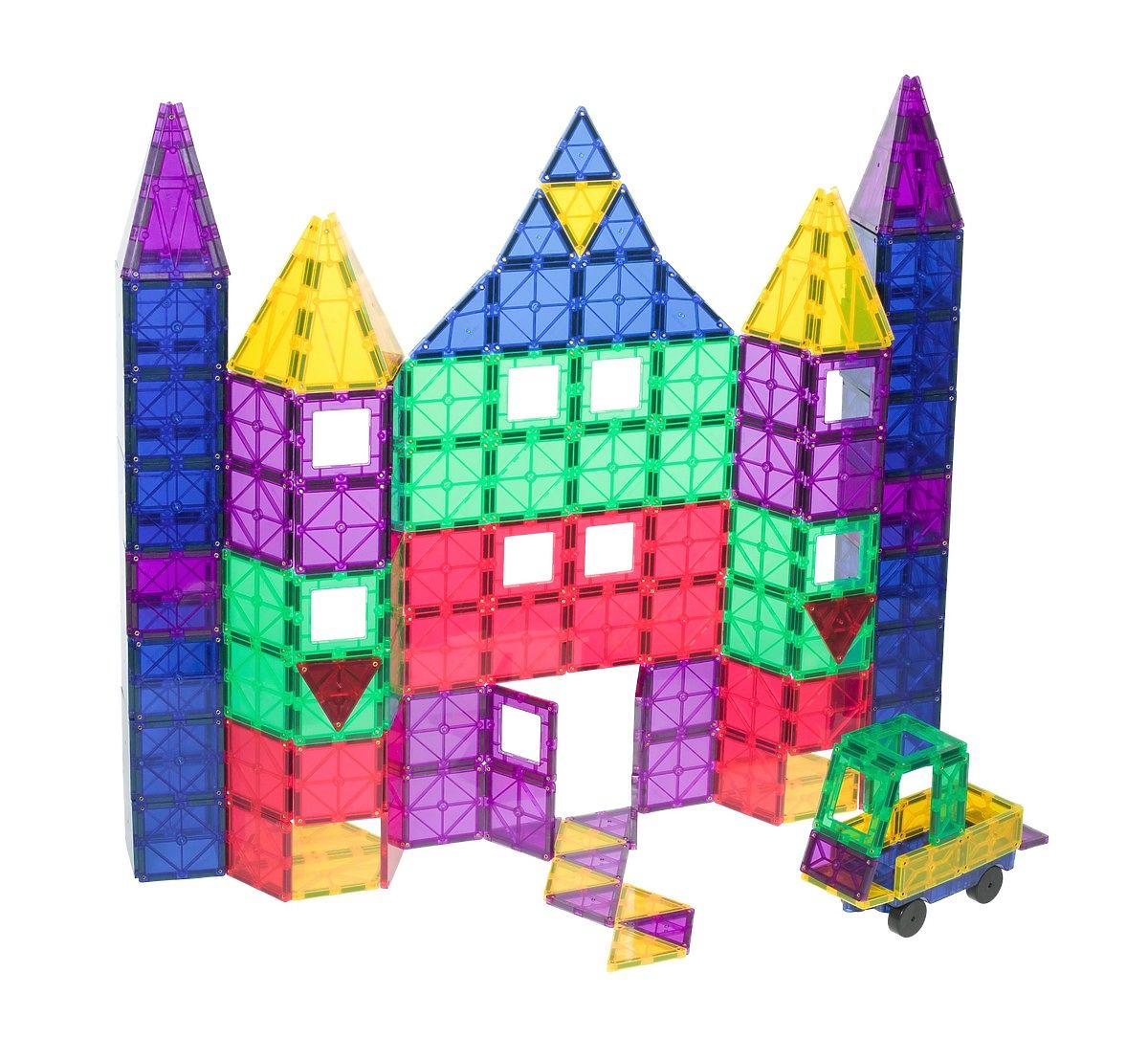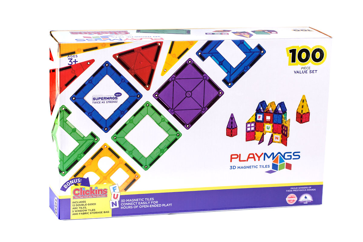 The 100-piece Playmags ™ set also includes a car pad with wheels and eight different shapes so children can develop their imagination. Multiple shapes mean more hours of fun games.