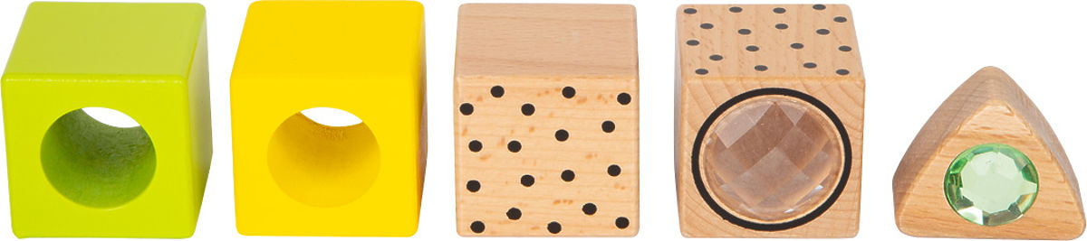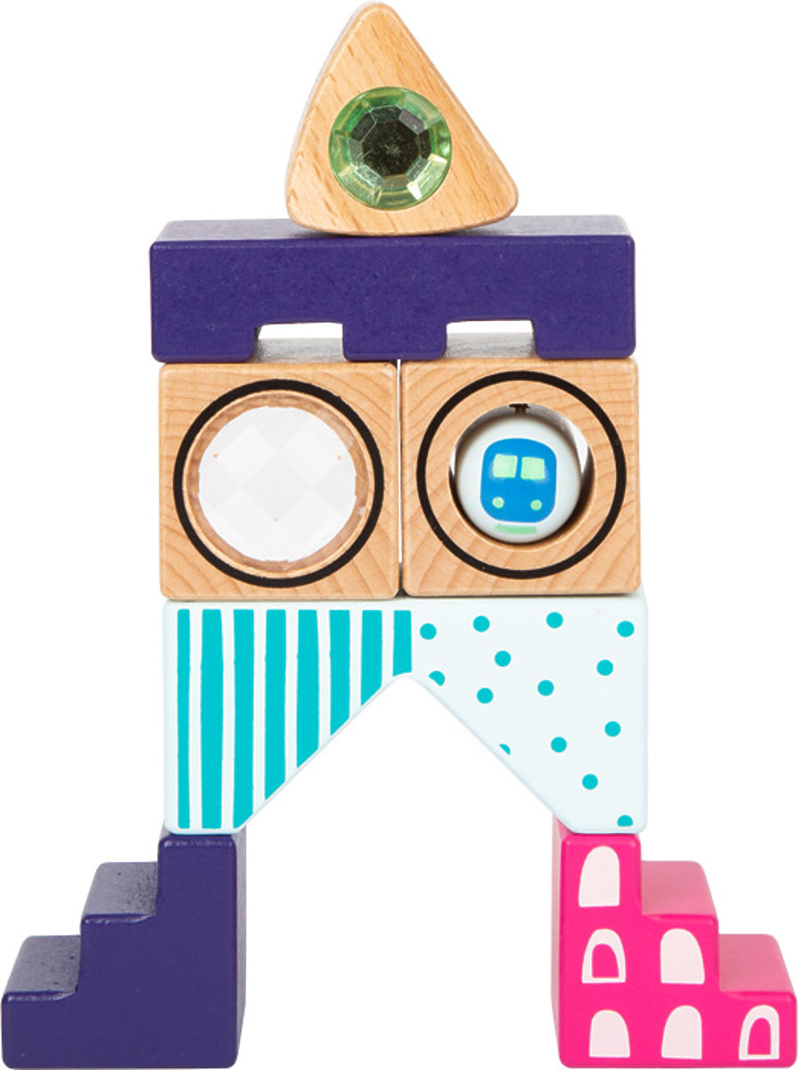 Perfect for building, stacking, storing, and discovering! The Fantasy wooden blocks will surely delight even the youngest children. Exciting visual and tactile effects, rattles, prisms, vibrant colors and shapes, stones, and a moving train stimulate the senses and ensure long-lasting fun. As they stack, little builders practice coordination and fine motor skills, creating the most imaginative works of art. Ideal for combining with natural wooden blocks! High-quality craftsmanship, easy to grip, and perfect for children's hands. In a sturdy gift box, the blocks can be stored safely! With these special, sensory-stimulating building blocks, children's eyes light up with joy! Main features: Sensory blocks stimulating the senses, captivating colors and shapes of the blocks.