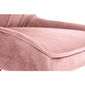 Both the seat and the back of the chair are upholstered with pleasant to the touch, velvet fabric in pink, which is cross-stitched on the back.