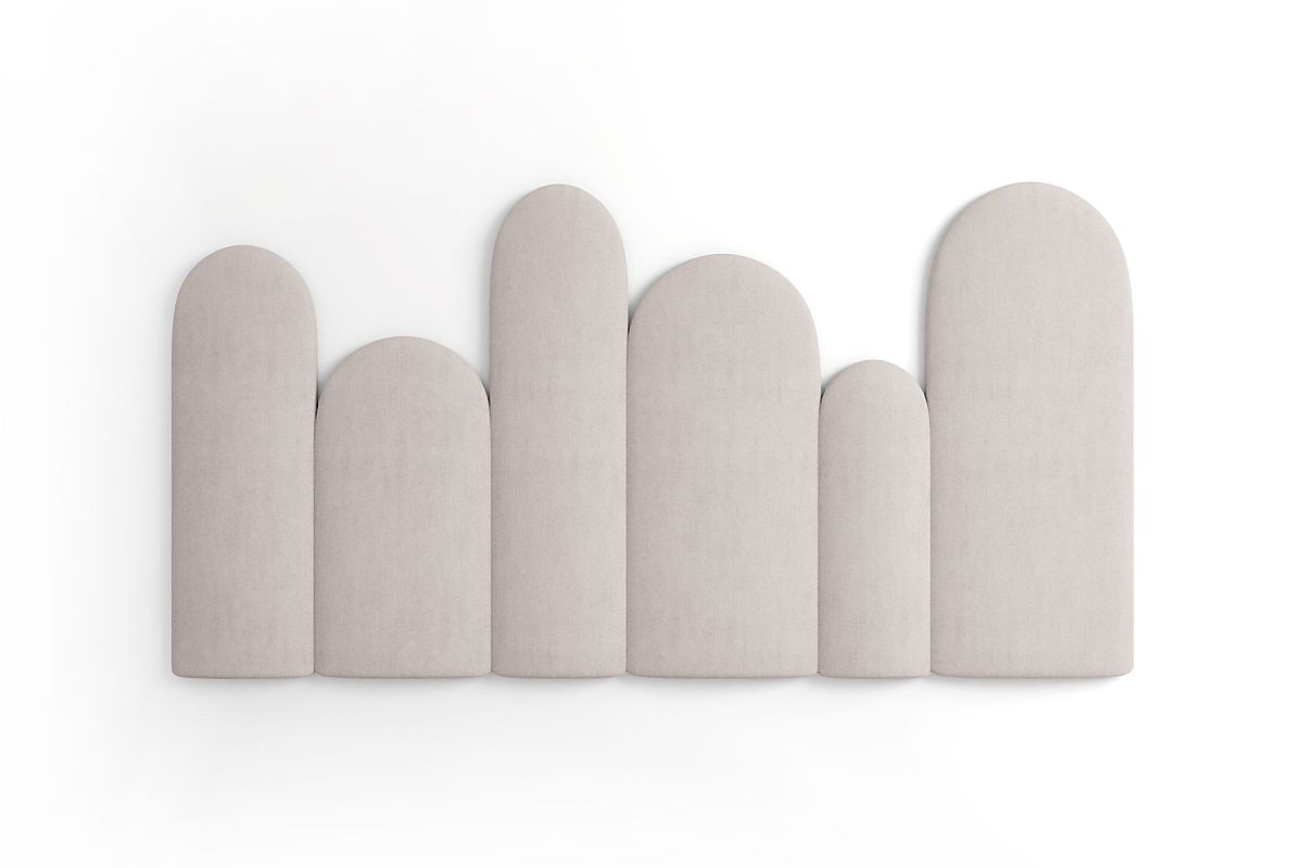 Set of Upholstered Panels is an original solution for enlivening a child's room or bedroom. Includes 6 modules with a rounded top edge resembling a fence, which can be freely combined to create your own wall arrangement. The panels are made with an emphasis on quality, safety, and comfort. The grey design is universal and easily combines with other furniture and accessories.