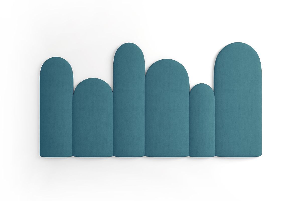 Set of 6 blue upholstered panels with a fence-like shape for children's rooms. .. more