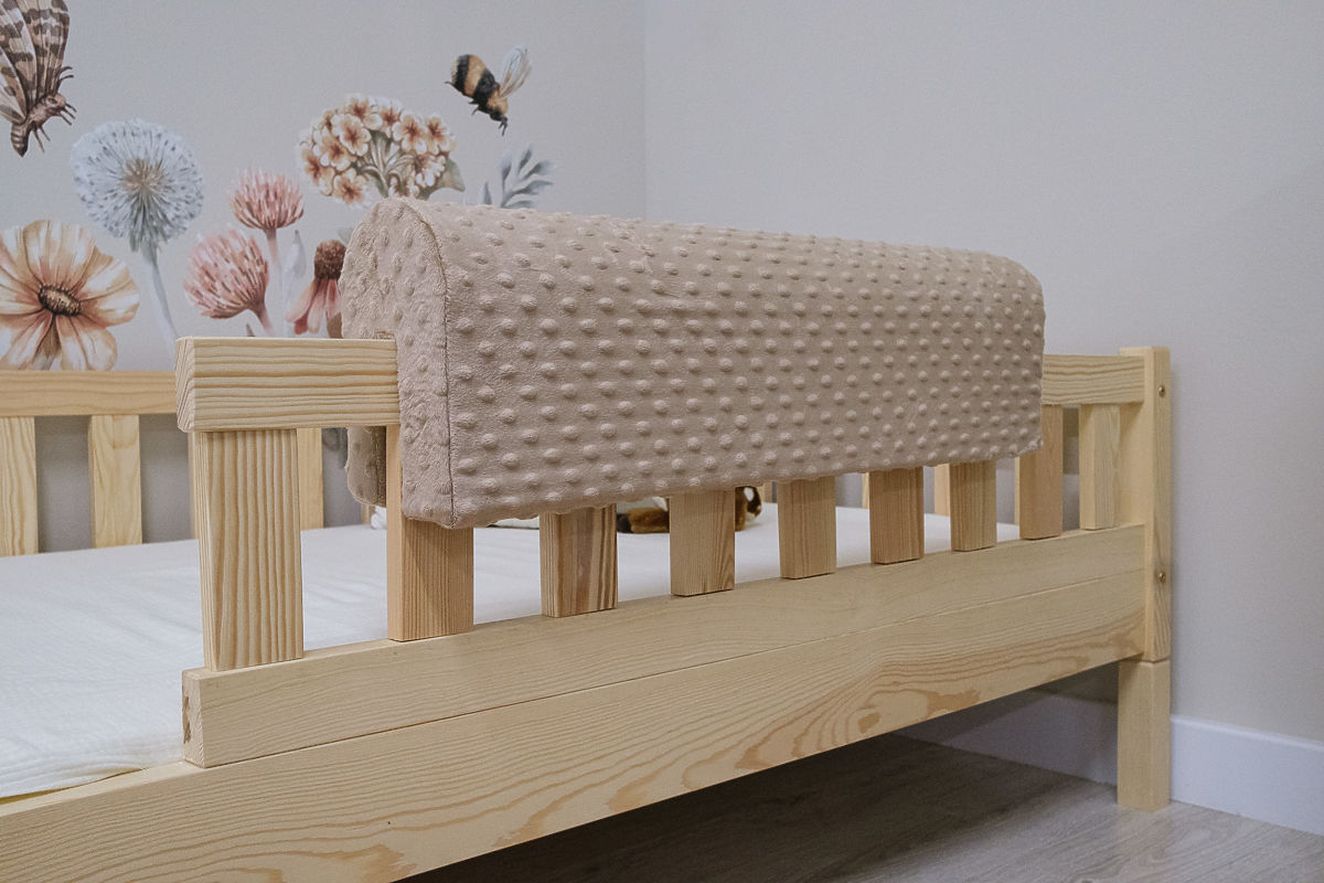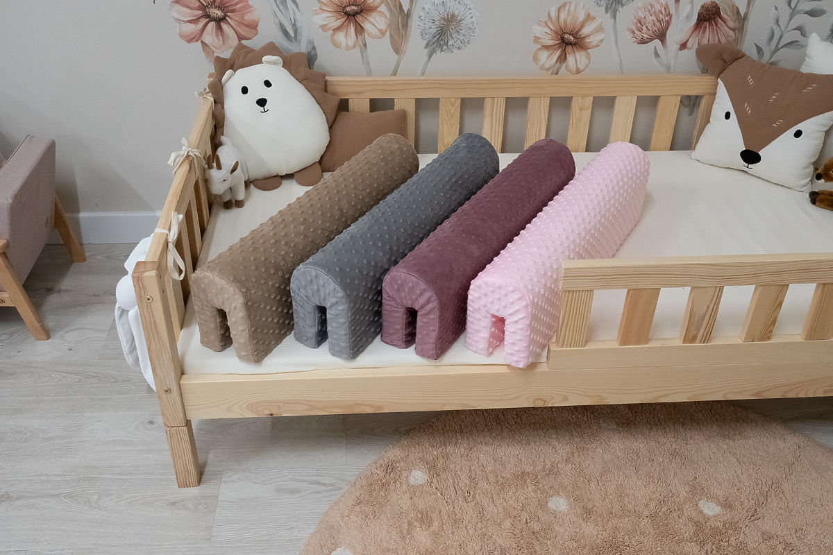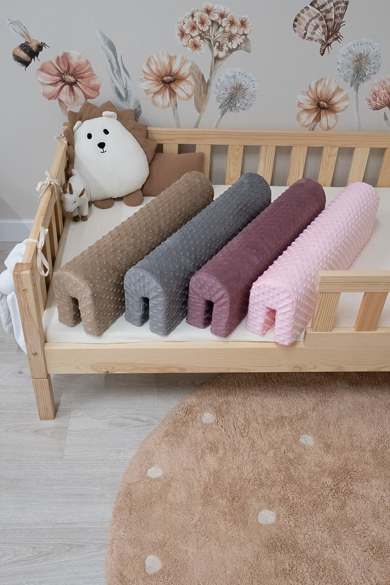 Soft, safe, and beautiful. That's the brown Ourbaby bed protector, a great addition to any child's room. The protector is made from high-quality polyurethane foam and the cover from soft and pleasant Minky fabric. It is available in three sizes, making it perfectly adaptable to beds of any dimension.