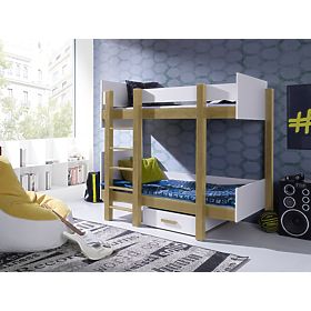 This modern bed in the colorful cappuccino / white combination ensures that the room will look pure and stylish. The bed frame is made of pine wood, the panels are made of high quality MDF boards with ABS edge.