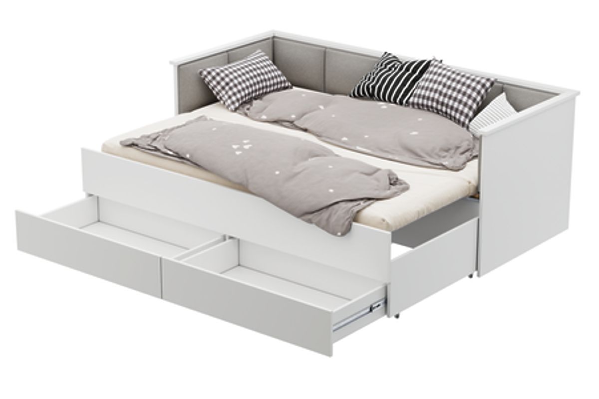 The convertible youth bed HELIOS available in white is a perfect combination of elegance and functionality. With the ability to quickly convert into a double bed (160x200 cm), it is an ideal solution for both smaller and larger rooms.