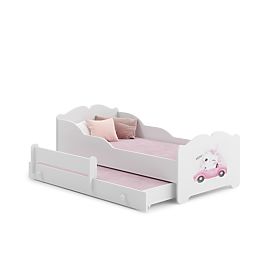 The bed is designed with comfort and safety in mind, making it an ideal solution for any girl's room. The uniqueness of this model is highlighted by the delicate print on the front, which adds charm and a girlish character, while being made from safe, certified lacquers. High-quality materials, rounded edges, and a sturdy construction guarantee safety, while the FLEX slat system provides comfortable sleep. With two sleeping surfaces, the bed can serve for many years, growing along with the child.