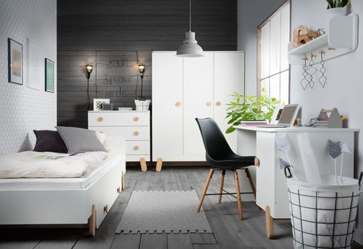 The white color combined with natural wooden elements fits perfectly in both girls' and boys' rooms.