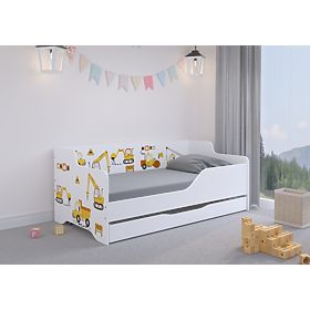 Children's bed with a backrest and construction site print, 160 x 80 cm. .. more