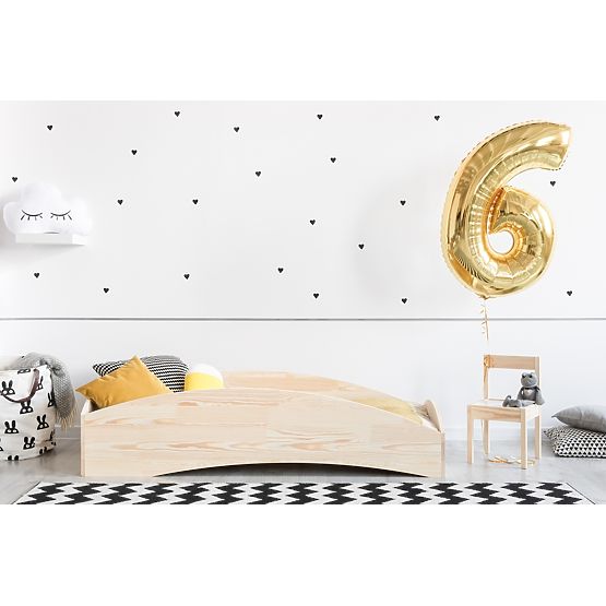 Simple Scandinavian-style bed with bow-shaped sides impresses with atypical lines. Thanks to a large selection of sizes, it is suitable for both children's and student rooms.