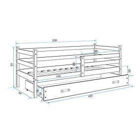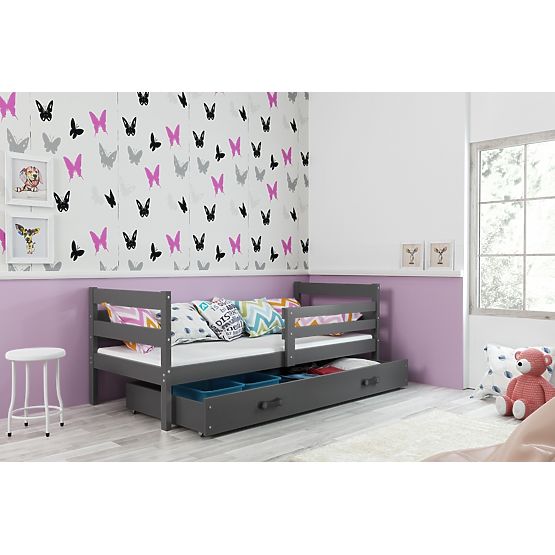 Single gray Erik nursery room with drawer and safety bar. Properties: - the barrier is universal, during assembly you decide on which side you want to place .. more