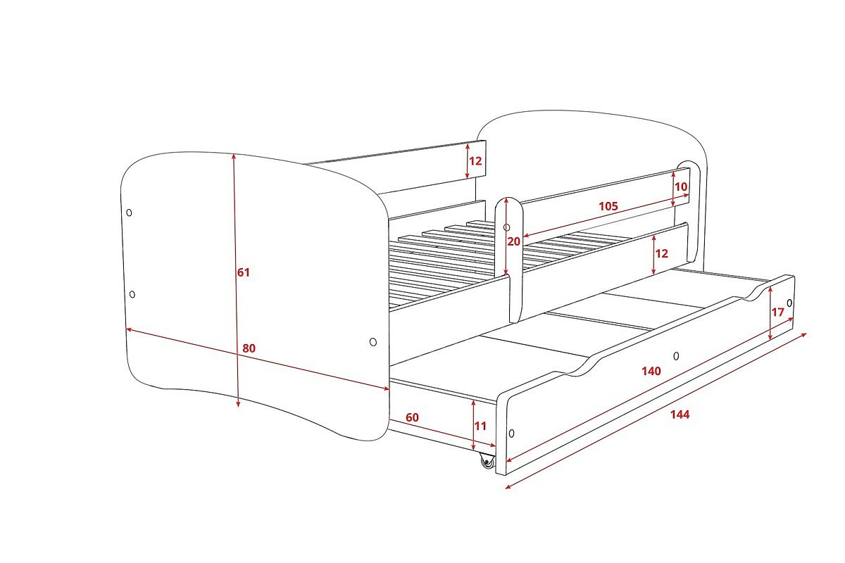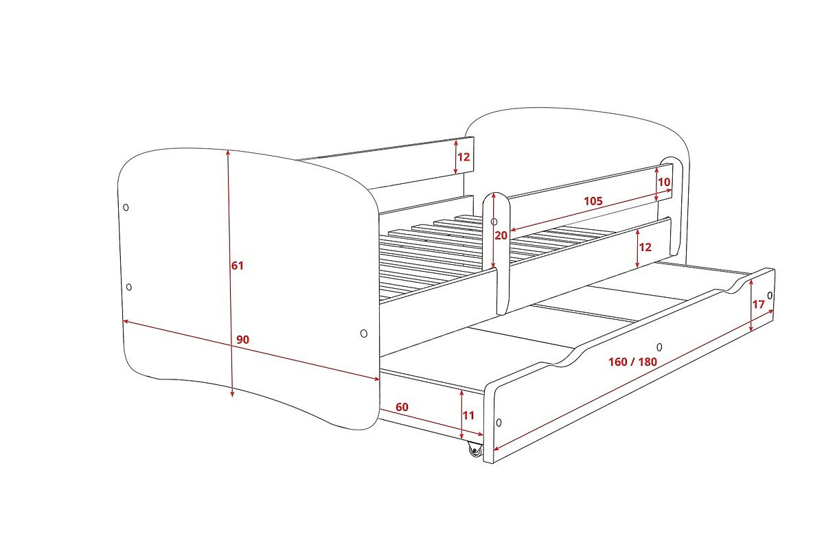 The baby bed offers maximum safety thanks to the rounded edges that children will not hurt. A 100 cm detachable guard protects the child from an unpleasant fall from the bed.