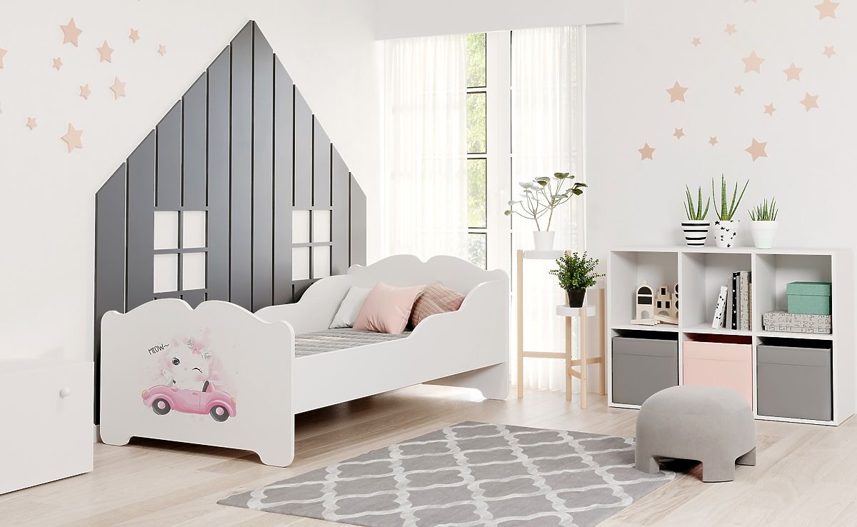 The ANNA girl's bed measuring 160x80 is a combination of functionality, safety, and aesthetics. Classic white with a cute girl print on the footboard perfectly fits into a child's space, creating a cozy and stylish sleeping area.