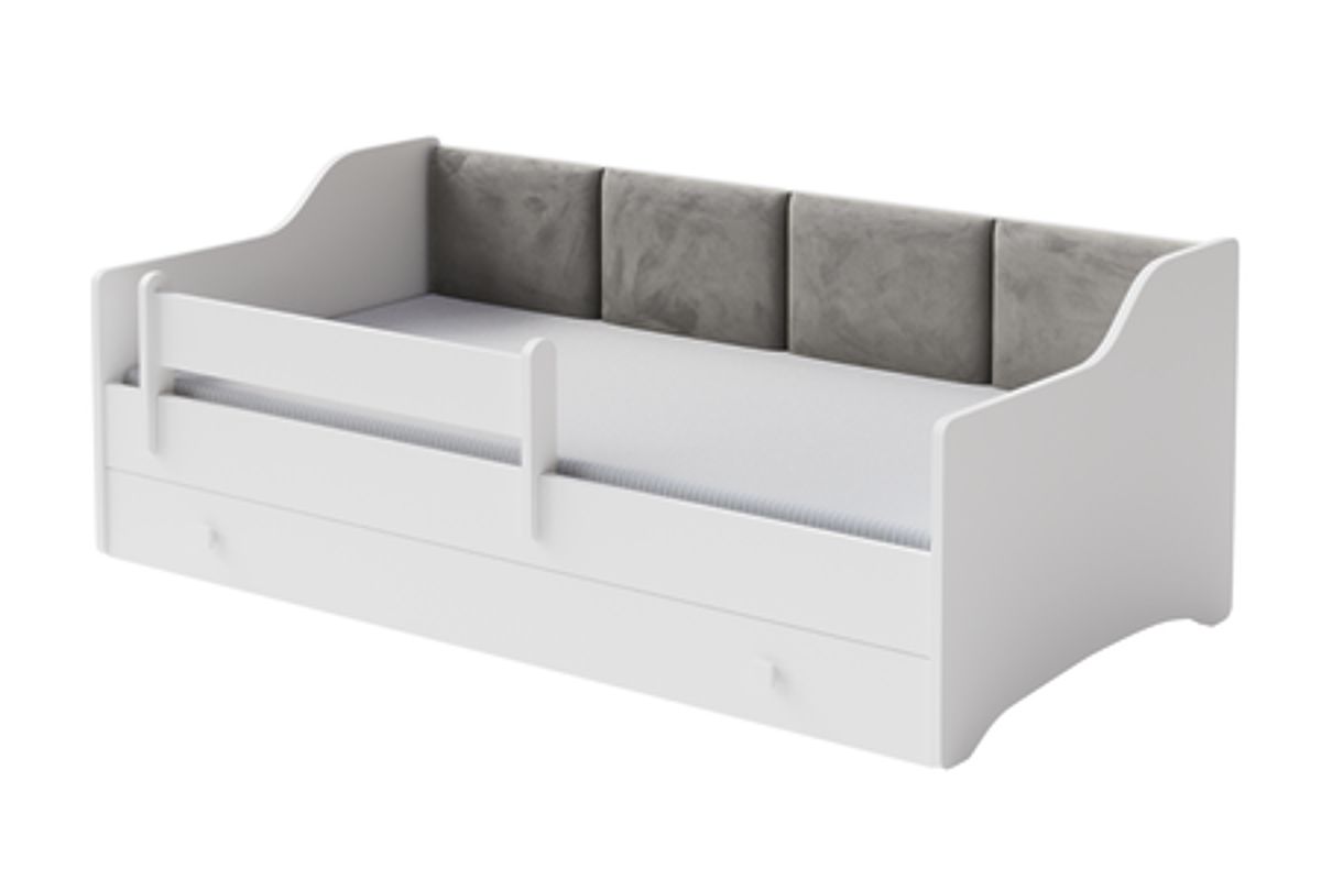 The multifunctionality of the Eryk model makes it furniture that serves not only for sleeping but also for storage. The bed is equipped with a practical drawer on wheels, ideal for storing bedding, toys, or other children's accessories. With this additional space, you can easily keep the child's room tidy while saving space. Soft upholstery and a removable protective guardrail provide the child with comfortable sleep and safety, making the bed an ideal solution for any child's room. The solid construction and aesthetic finish ensure that the Eryk bed will serve for many years, providing comfort for the child and peace of mind for the parents.