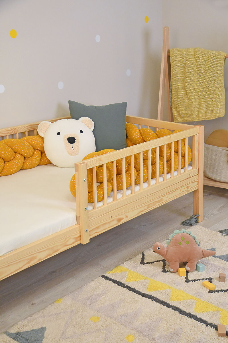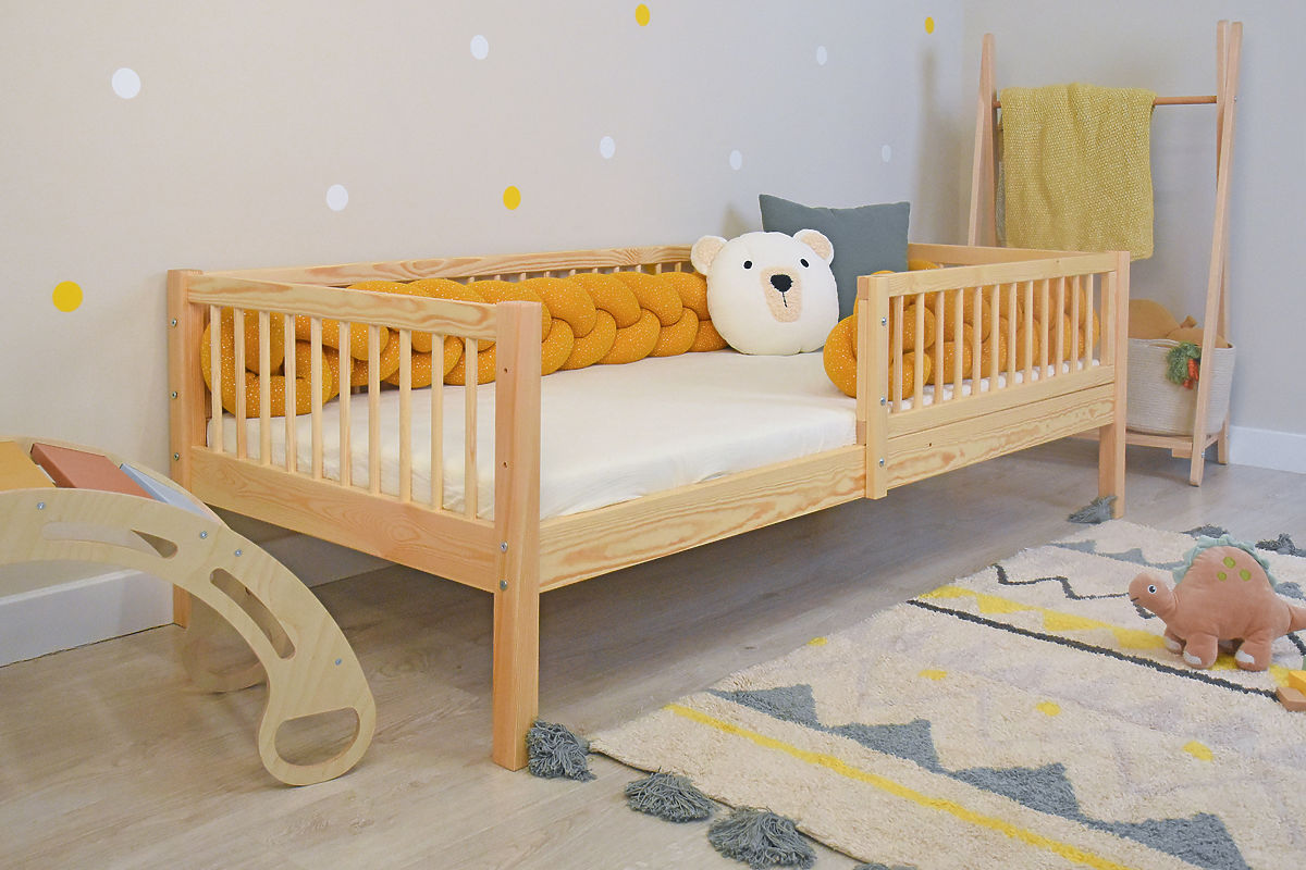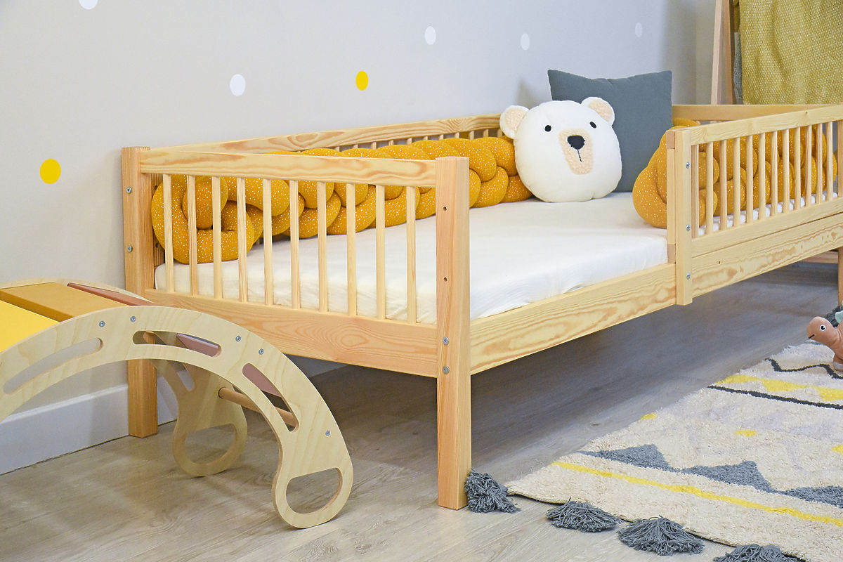 The high-quality children's bed Teddy Plus in a natural color is an ideal choice for any children's room. It is made from solid pine wood, ensuring strength, stability, and long-lasting durability. The natural surface without chemical varnish is suitable even for more sensitive children. Thanks to its thoughtful design, the bed provides not only a comfortable sleep but also safety and a practical storage space under the bed.