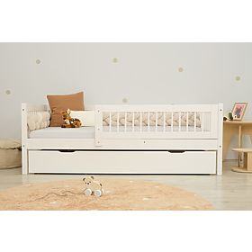 White Niki bed with slats and safety guardrail, 160 x 80 cm. .. more