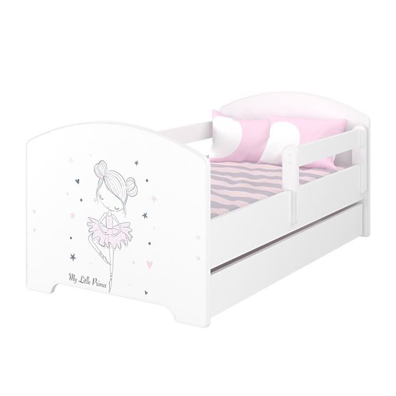 Children's bed Oscar "Ballet" in white design with a ballerina motif. A beautiful bed that will stand out in any children's room. The bed includes 2 x barriers and a grate made of pine wood.