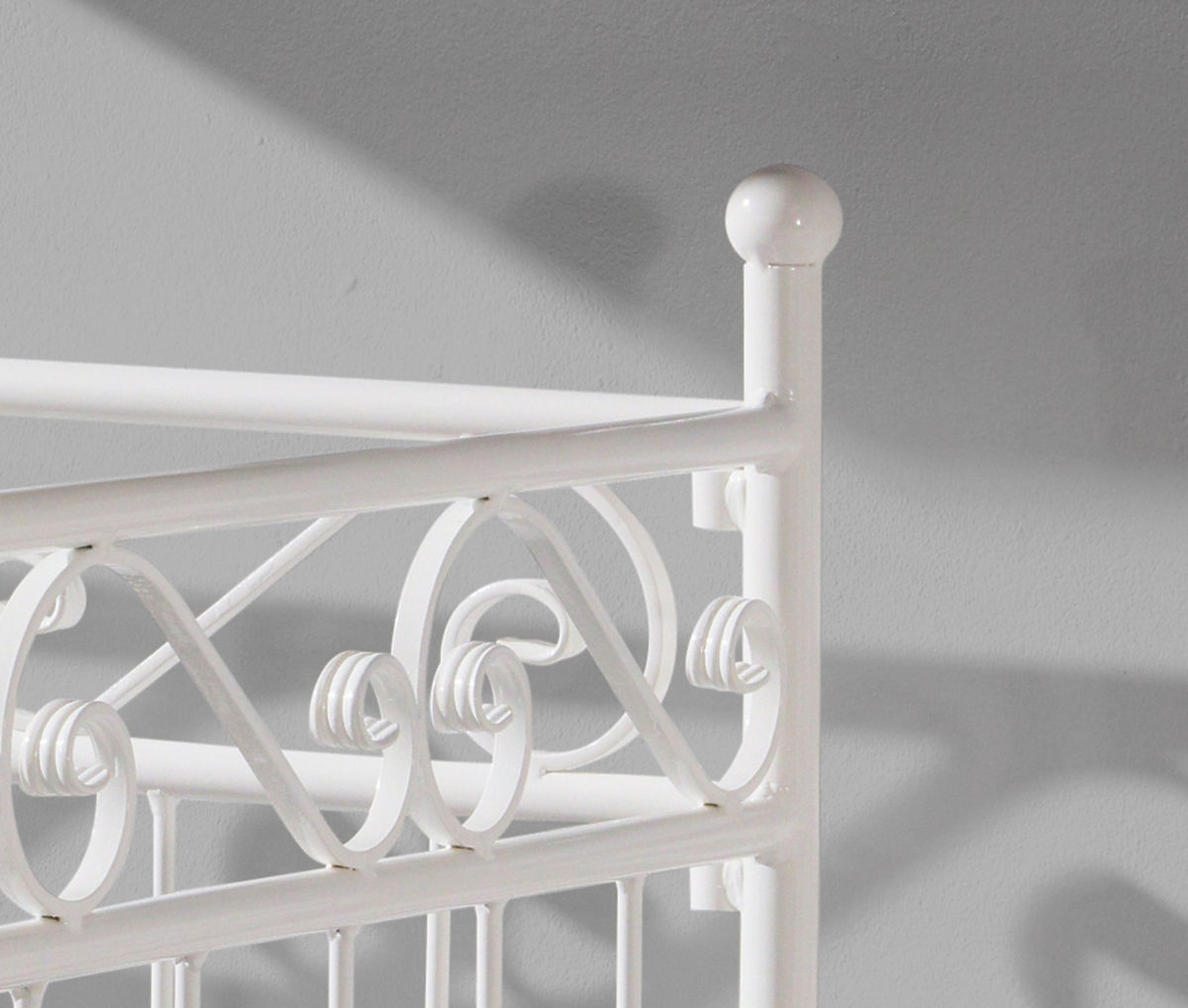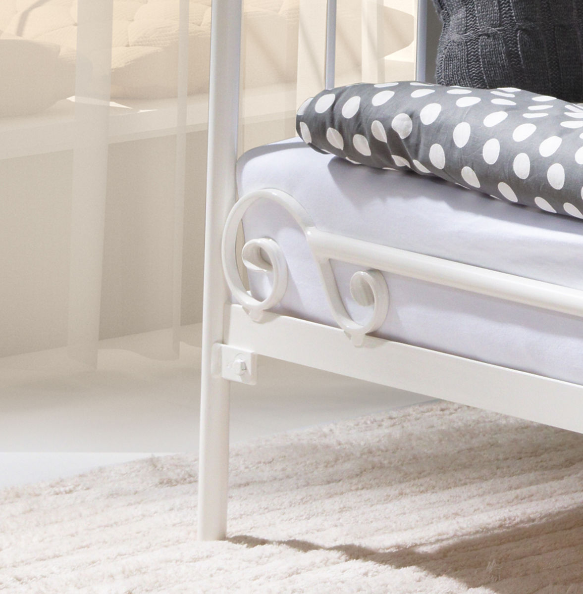 This beautiful handmade metal bed will bring elegance and style into your children's bedroom. You will fall in love with its stunning decorative details, such as the heart on the side of the bed or the S-shaped wrought iron parts. The original shape of the bed can also be used as a sofa. All four posts are rounded off at the top, which is safe and practical. As a sofa, it brilliantly complements a children's bedroom, terrace or a garden.