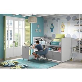 A multifunctional bed with a desk from a Belgian manufacturer that supplies furniture made of the finest materials and fully respects European Union standards for the safety of your children.