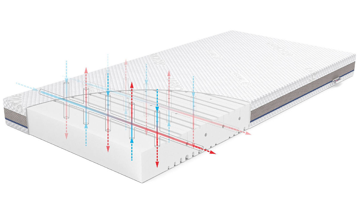 We have sewn a ventilation mesh around the entire perimeter of the mattress, which works with the mattress's air channels.