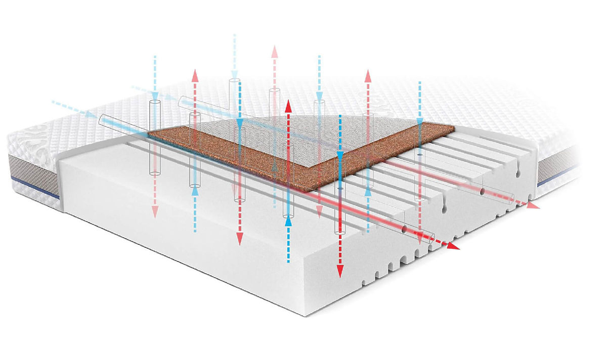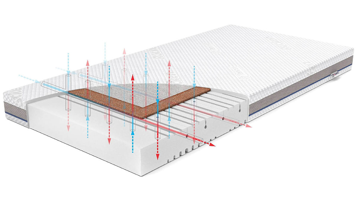 We have sewn a ventilation mesh around the entire perimeter of the mattress, which works with the mattress's ventilation channels.