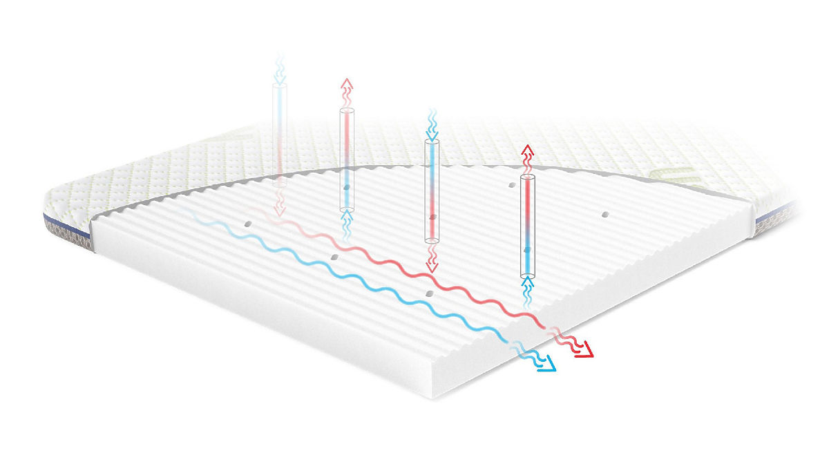 The cover mesh and vertical and horizontal channels are fully integrated - thus creating an extended network and the mattress breathes.