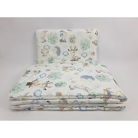 Cotton bed linen with padding is a practical alternative to classic baby bed linen. This soft set will bring your little ones a comfortable sleep. The bedding is decorated with a cute rabbit motif. Thanks to the universal colors, it will be great for both girls and boys.