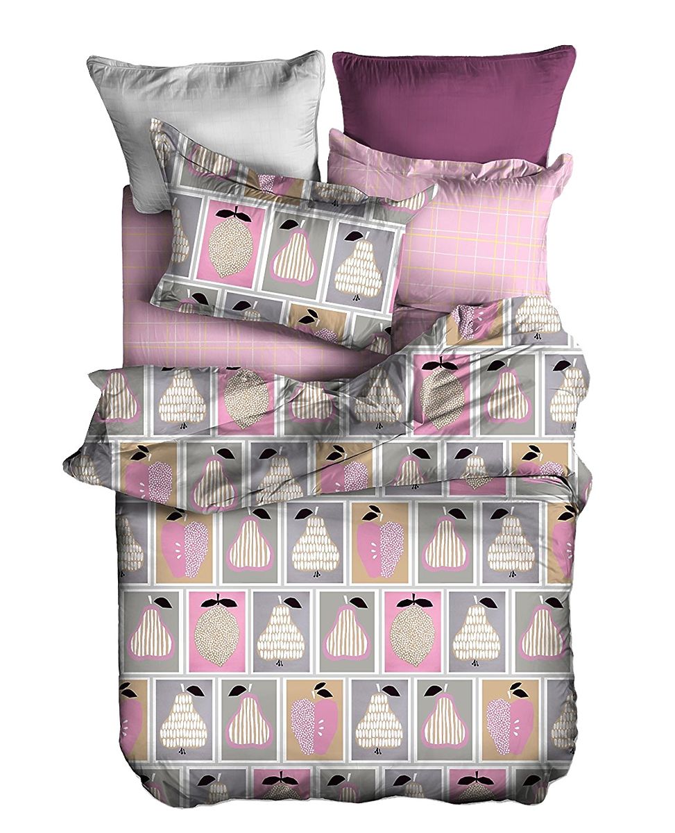 Bedding in powder pink with a geometric pattern. .. more