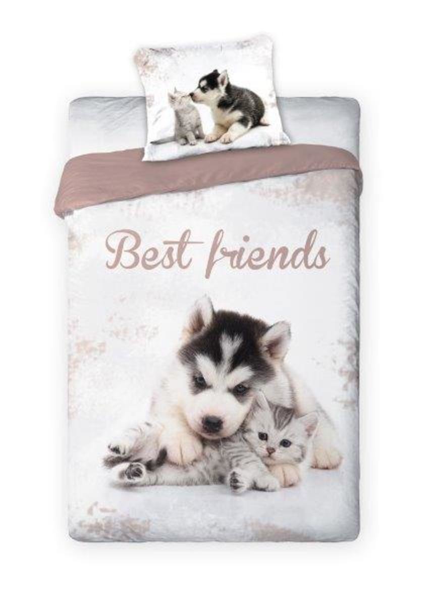Can a dog and a cat like each other? Everything is possible with Best Friends bedding! Beautiful bedding with a pair of puppy and kitten friends is made of .. more